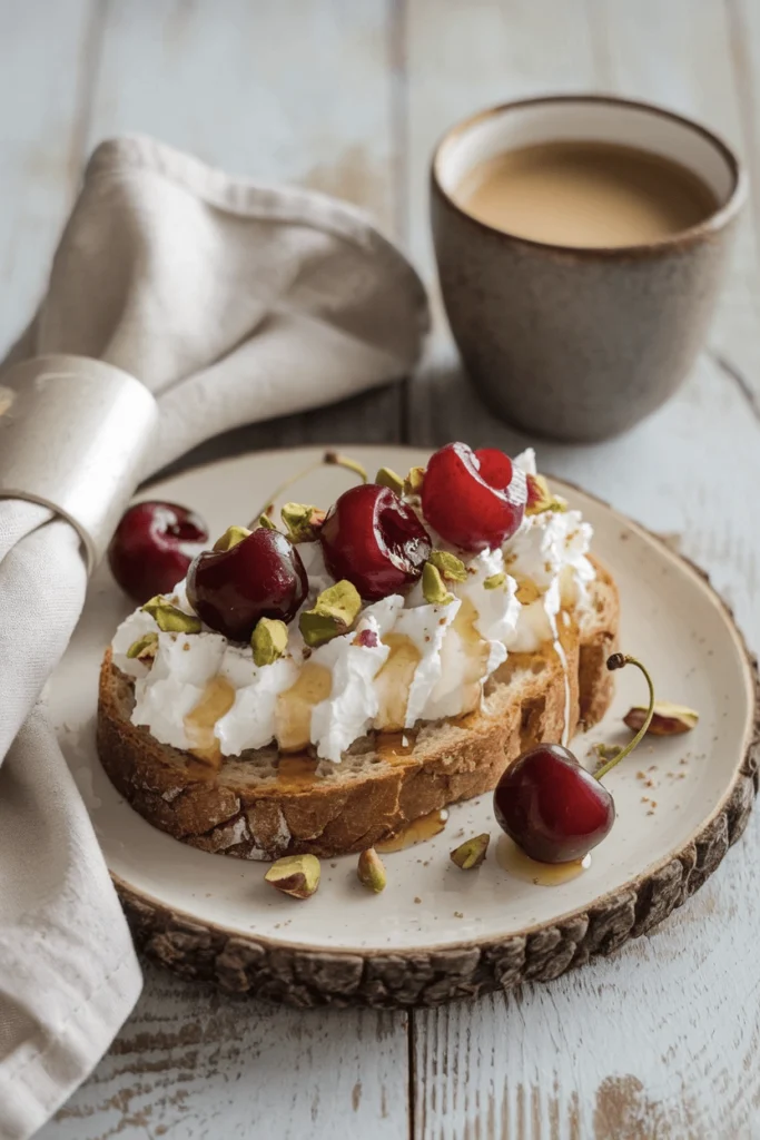 Cottage Cheese & Cherry Toast with Honey and Pistachios