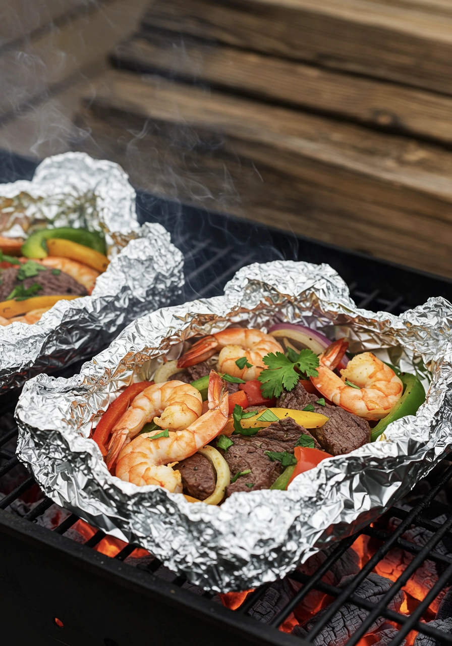 Tip: Pre-chop veggies at home and season inside the packet so you can drop it straight onto coals.