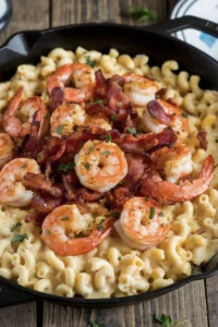 Spicy Cajun Shrimp Mac & Cheese with Crispy Bacon Topping
