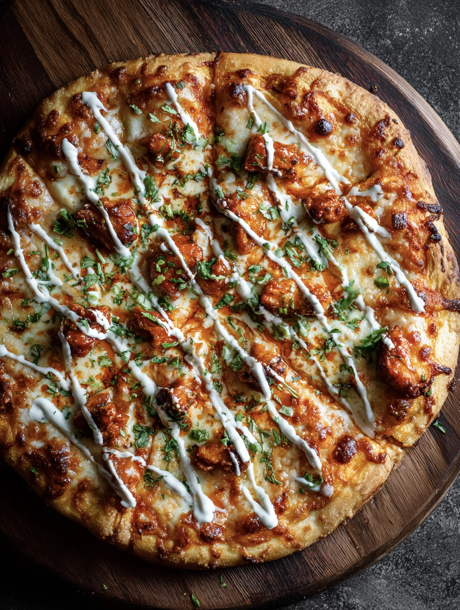 If you loved Nashville Hot Chicken, get ready to fall head over heels for its pizza cousin. Imagine a golden‐crisp crust layered with tangy tomato sauce, shredded mozzarella, and tender bites of spicy hot‐honey chicken finished with a cool, herbaceous ranch drizzle. This pizza delivers the perfect balance of heat, sweet, and creaminess in every slice.